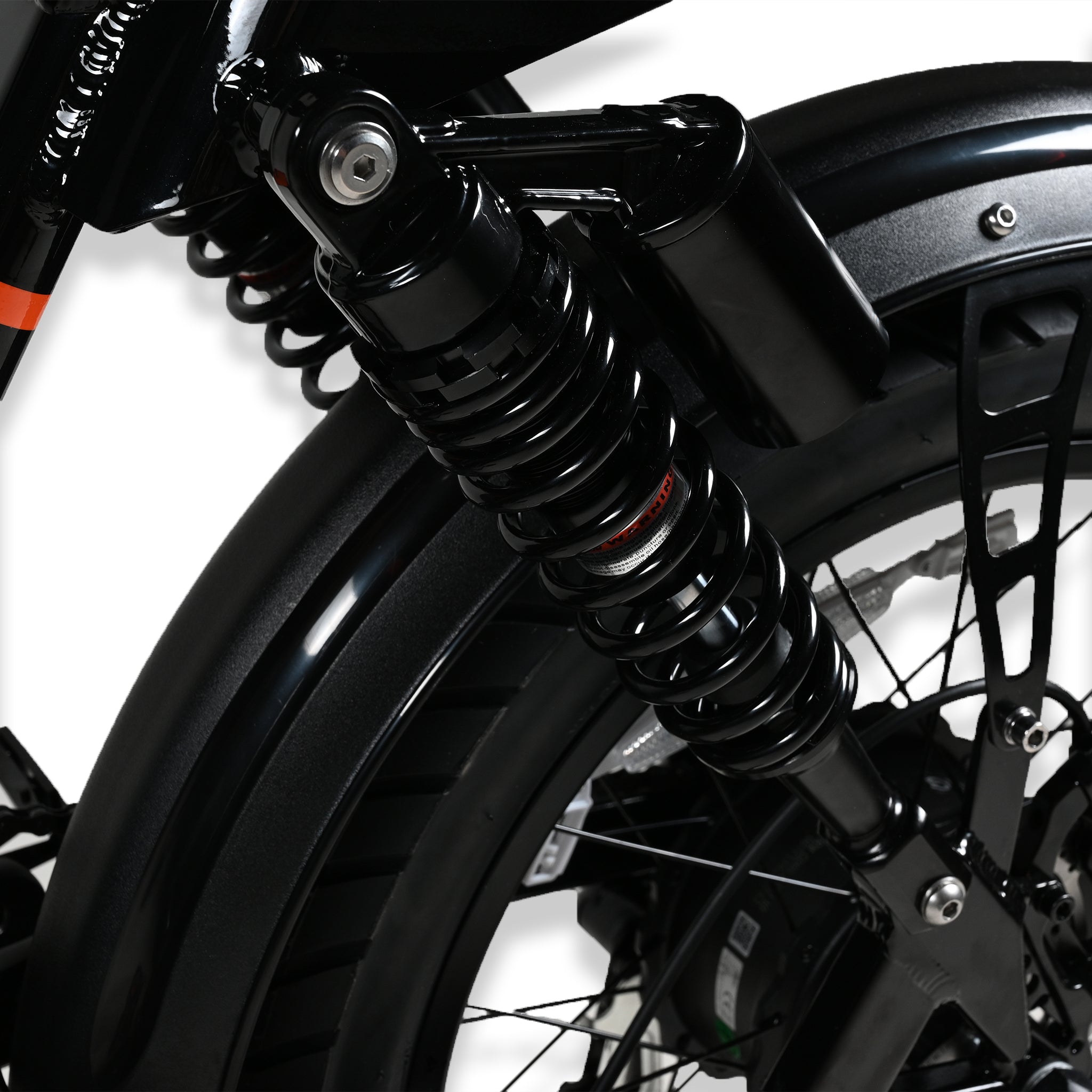 De dubbele voor- en achtervering vangt elke schok op, waardoor je comfortabel en zonder zorgen over elk terrein kunt fietsen
